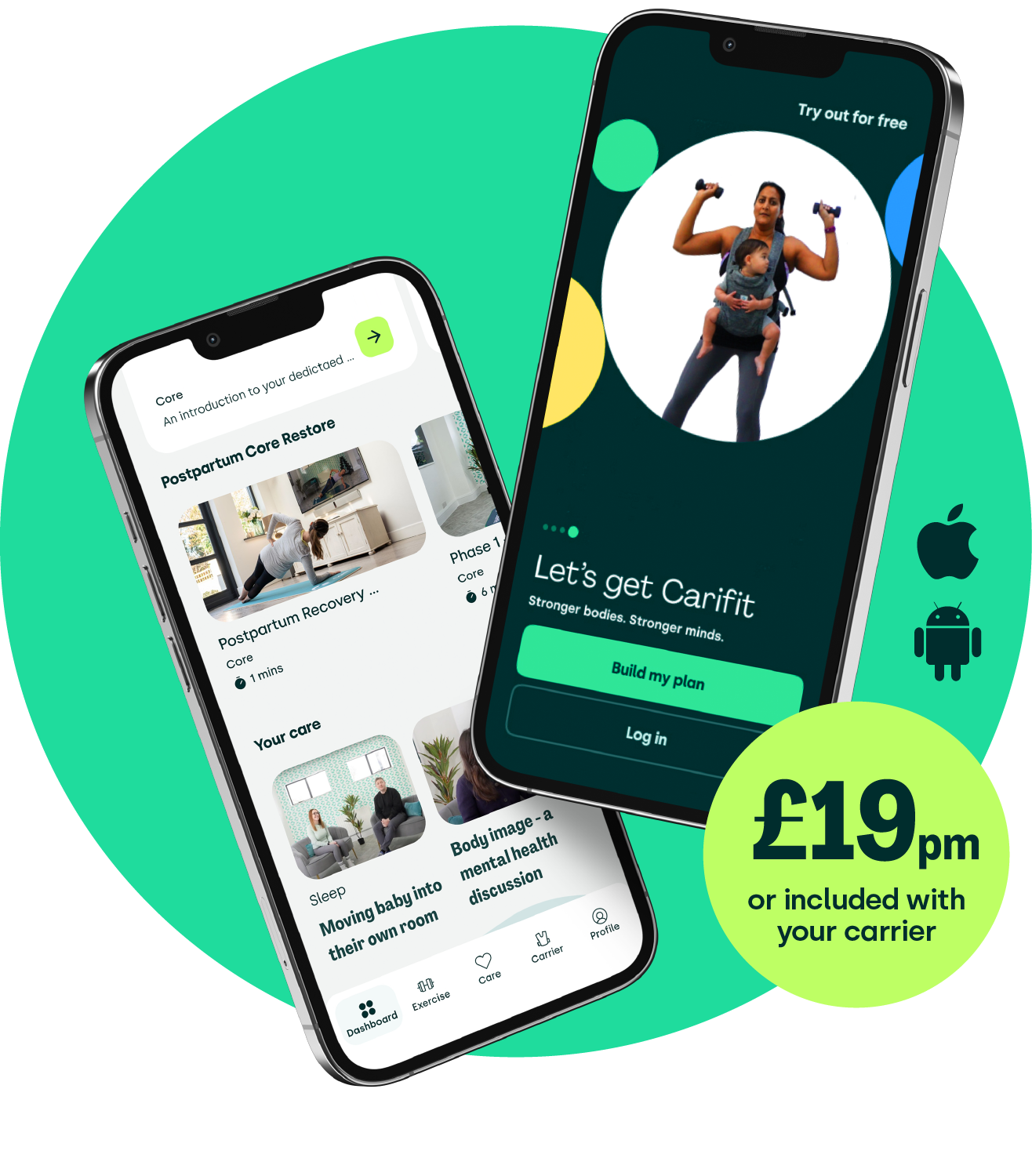 From pregnancy strength sessions and antenatal Pilates, to core restore and babywearing circuits, the Carifit app provides plans that get you moving, and which adapt and change as your baby grows and your strength builds.
